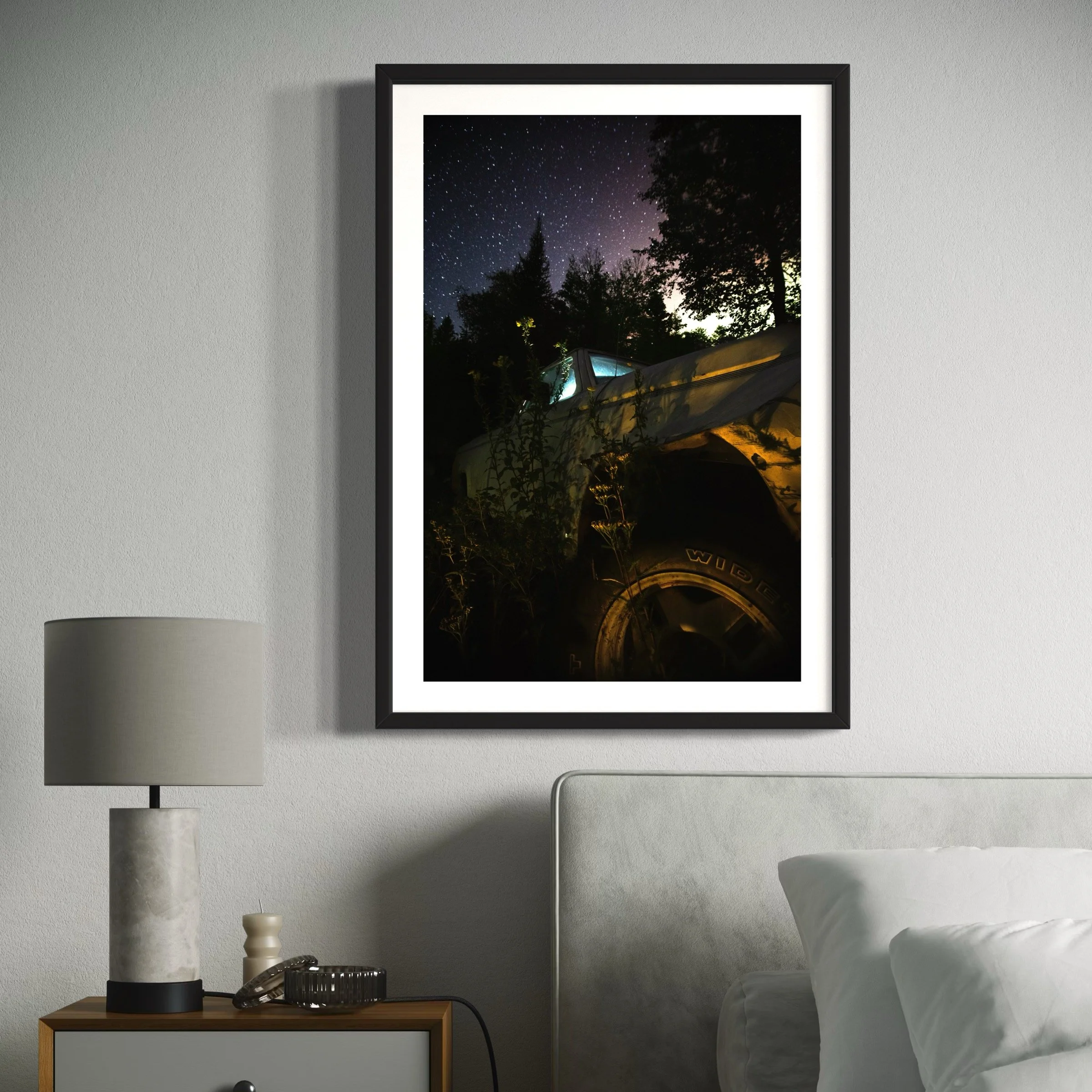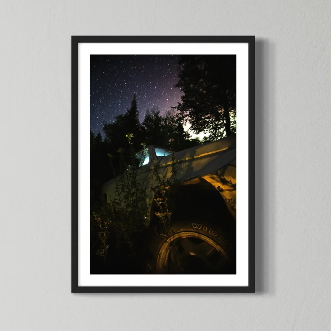 Add to cart $349.00 “PETALS THROUGH THE CHASSIS” 16” X 24” Limited at 50 Gliclee Paper - Black wood frame - Matted, Signed and Numbered by the artist with certificate of authenticity.