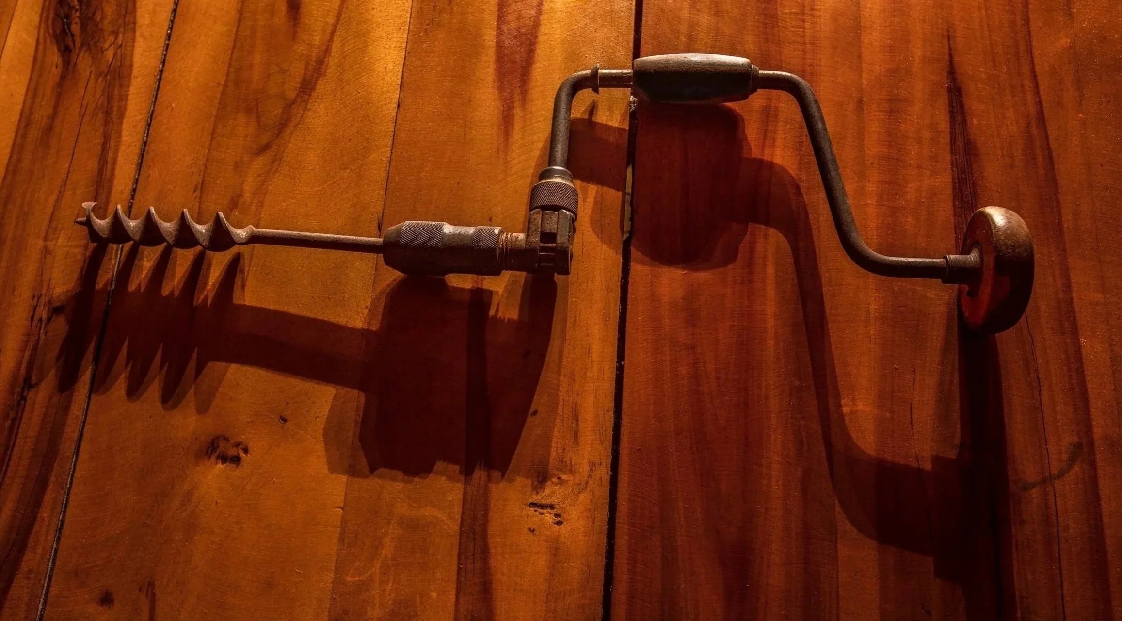 With one hand steadying the head and the other turning the crank, the bit would slowly pull itself into the wood, shaving spirals from the grain as it cut deeper and deeper. Each hole required effort. Each turn of the handle meant another push of the shoulders, another slow circle of iron against pine or cedar.