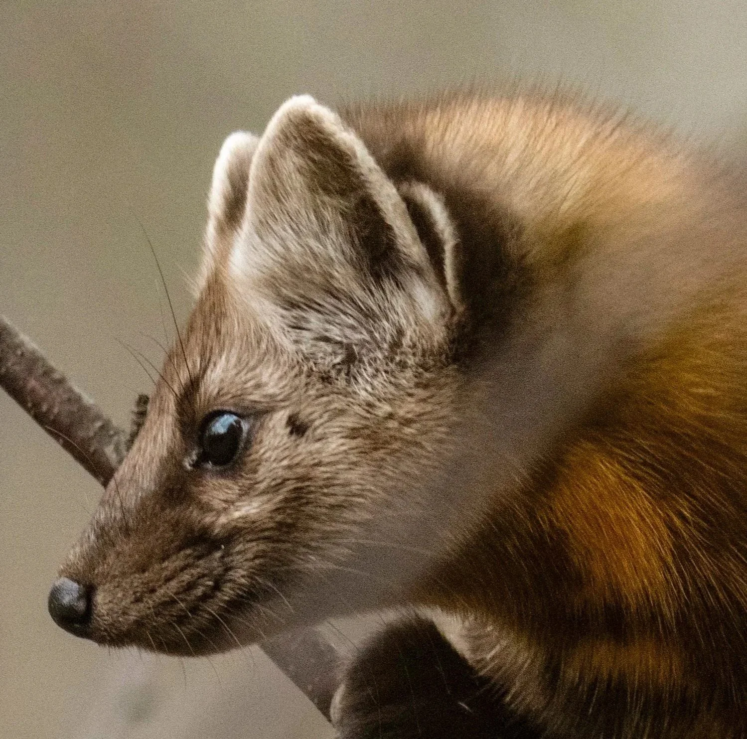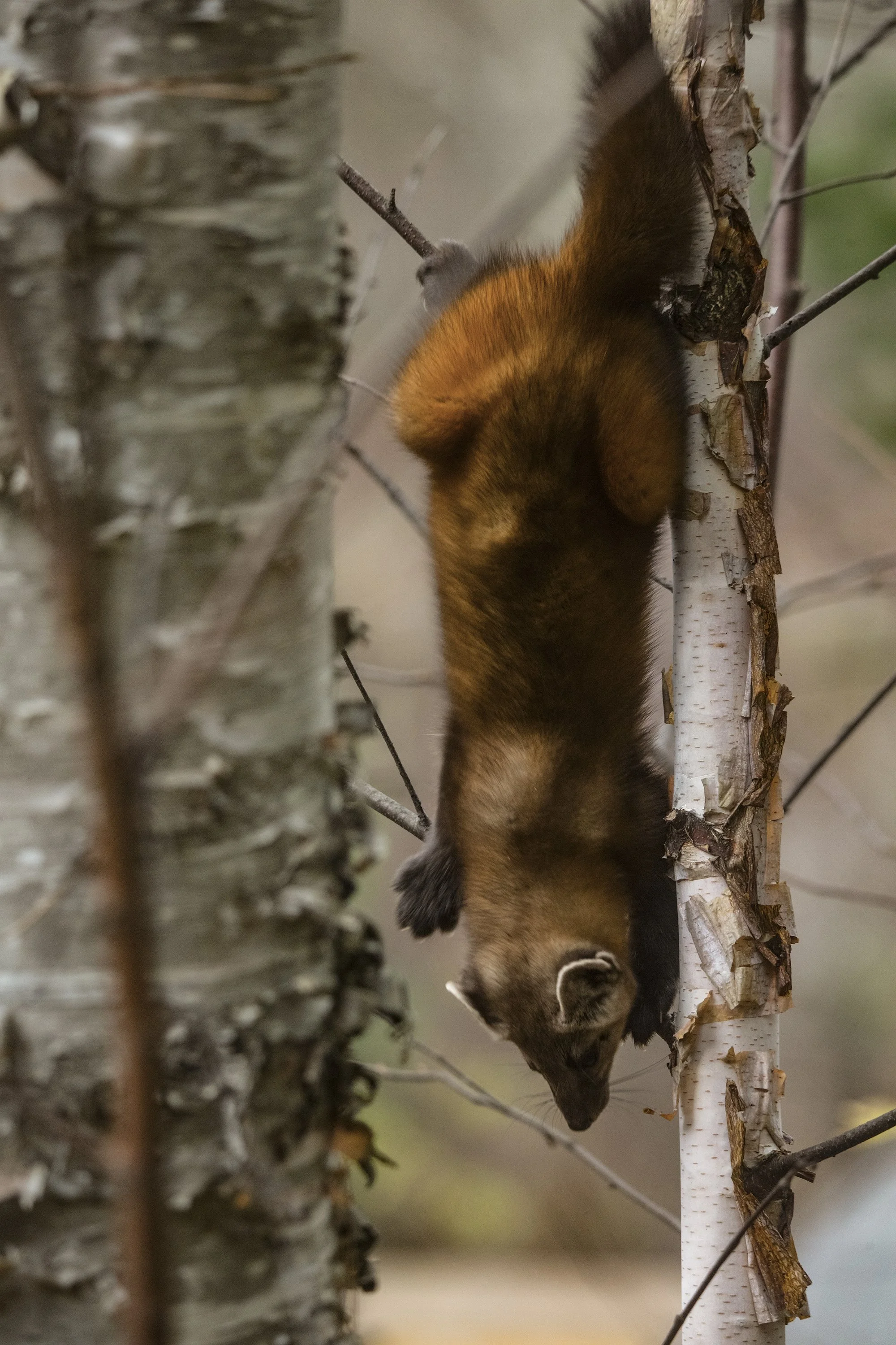 This Pine Martin moves like a flicker of wind through birch and shadow—quick, bright, impossible to follow. The pine marten is the forest’s restless spirit, equal parts hunter and jester, slipping through branches as if the woods themselves make way for him. His fur catches the light like amber bark, his eyes full of clever fire. For a moment he pauses, listening, balanced between mischief and mystery—and then he’s gone, swallowed by the trees that raised him. The forest exhales, and the quiet feels alive again.